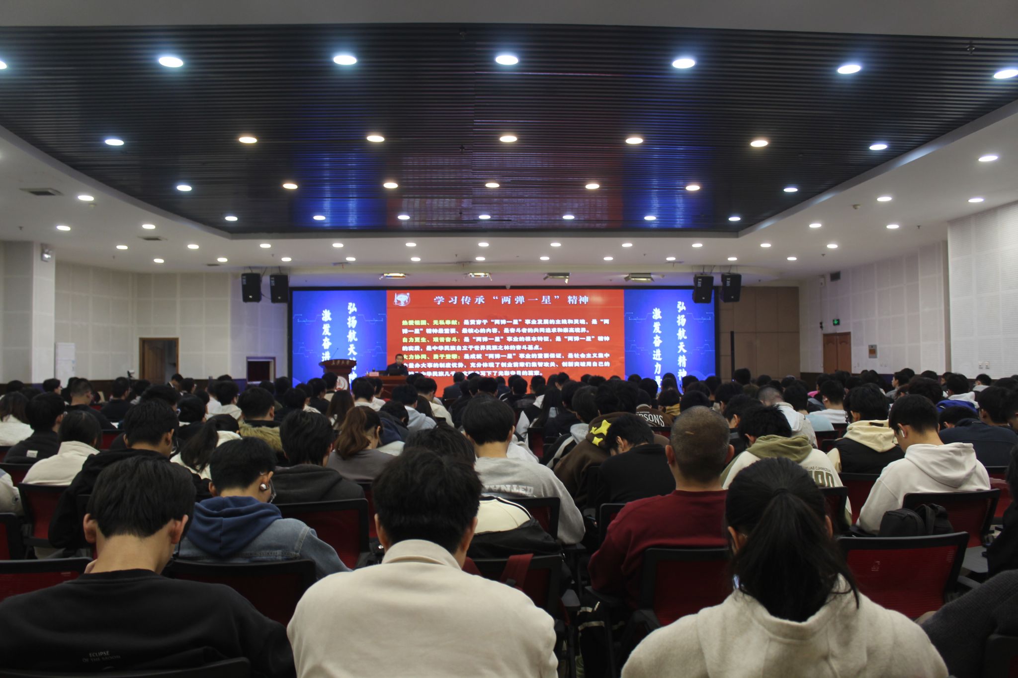 为大力弘扬科学家精神,涵养优良学风,教育引导广大学生立报国强国大志向,做挺膺担当奋斗者,11月12日,科研院(校科协)在北校区长安文化艺术中心三楼多功能厅举办科普报告专题讲座,马兰基地原政委、中国国史学会“两弹一星”历史研究会常务副理事长孔令才以《学思践悟“两弹一星”精神,争做堪当民族复兴重任的时代新人》为题作专题讲座。校党委副书记、纪委书记陶继东出席报告会,会议由科研院副院长姚以亮主持,南北校区共600余名学生参加。