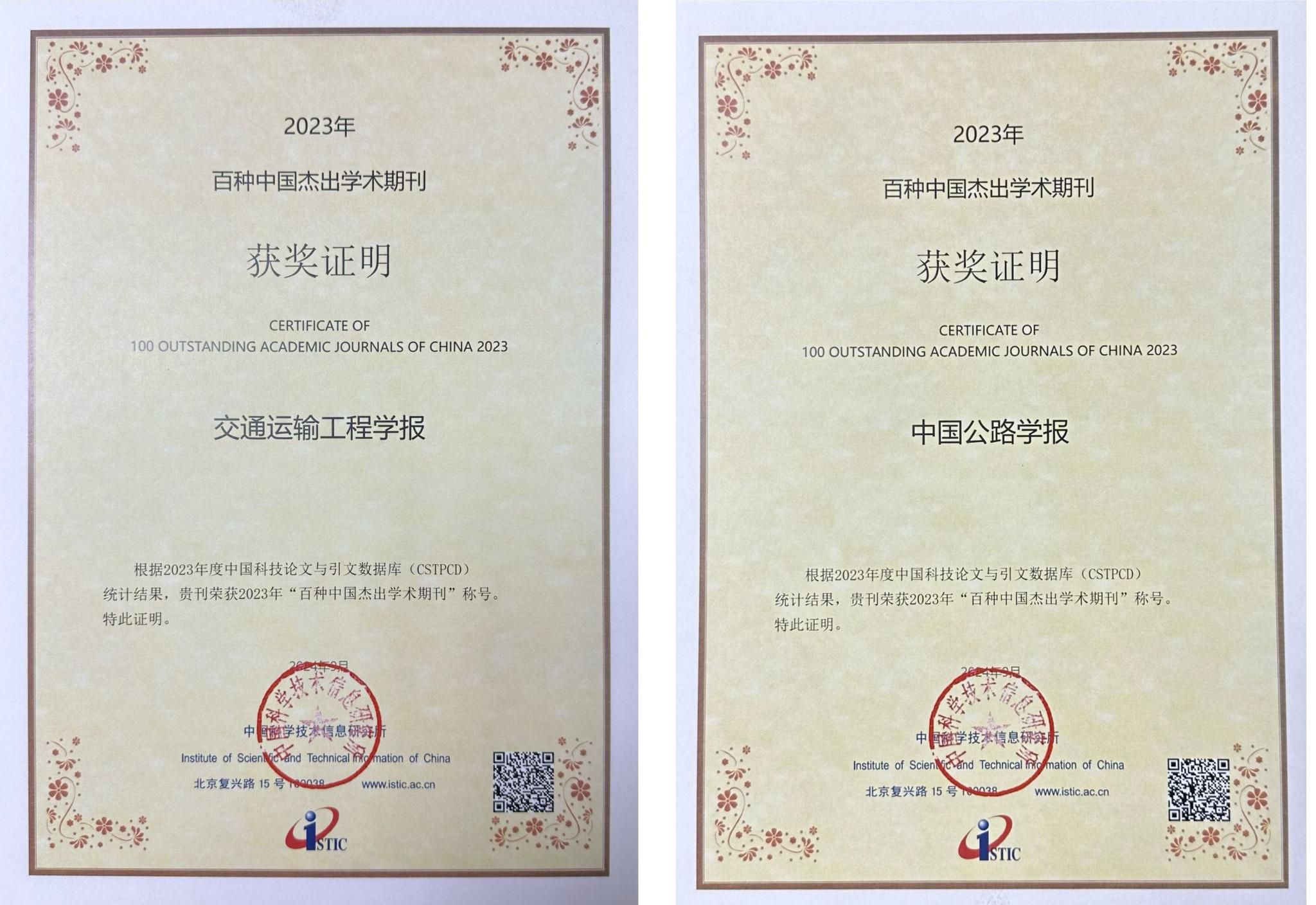 9月20日,2024年中国科技论文统计结果发布会暨中国一流科技论文世界影响力评价论坛在北京召开,中国科技信息研究所发布了2023年度百种中国杰出学术期刊名单和2024版中国科技核心期刊目录。根据会议发布结果,KY.COM《中国公路学报》《交通运输工程学报》入选2023年百种中国杰出学术期刊。这分别是KY.COM两大学报第19次、第16次入选百种中国杰出学术期刊。