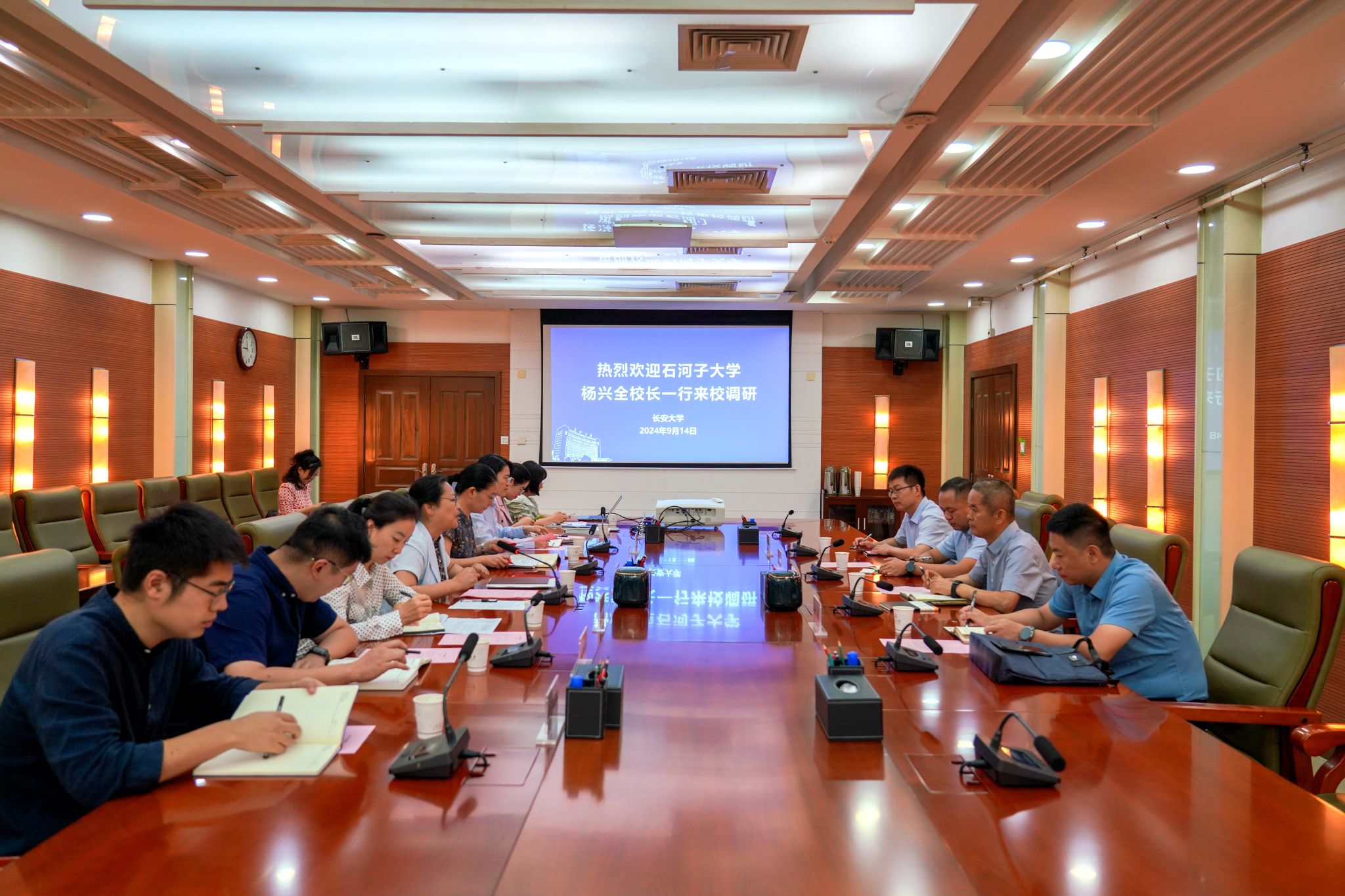 9月14日上午,石河子大学党委常委、副校长杨兴全一行来校调研交流。开元(中国)党委副书记、副校长彪晓红参加调研。