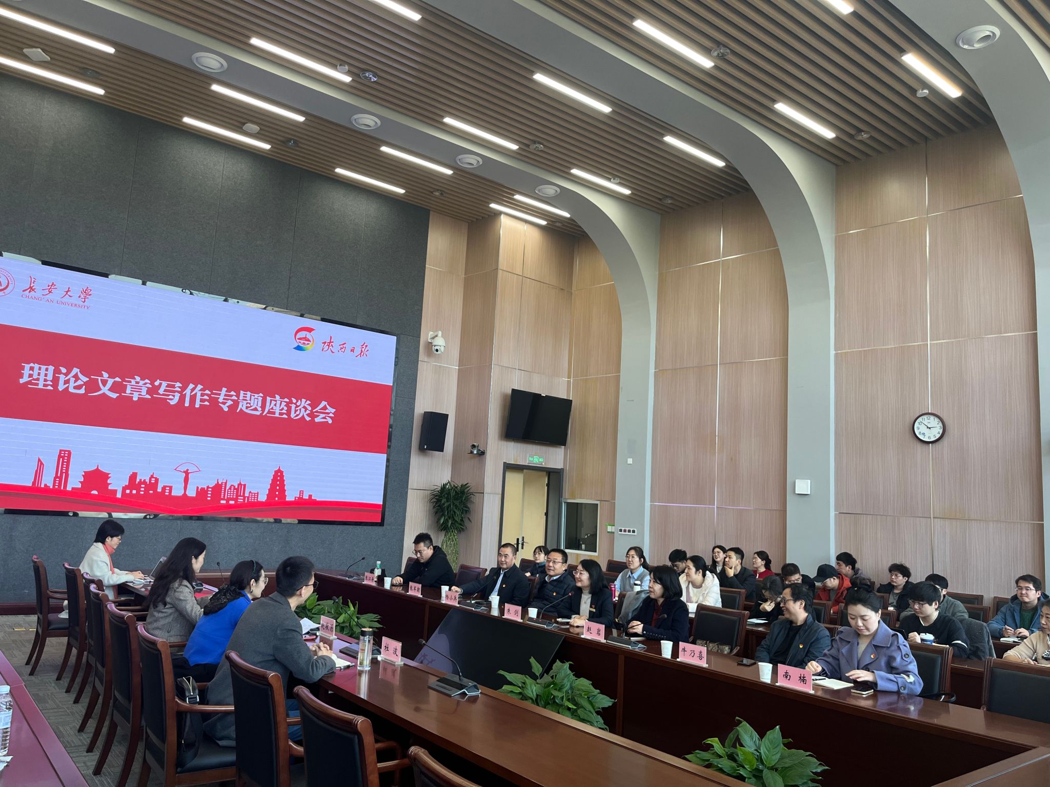为进一步加强有组织科研,不断深化习近平新时代中国特色社会主义思想研究阐释,11月28日下午,科学研究院组织举办了理论文章写作专题座谈会。座谈会邀请了陕西日报社理论评论部主任朱剑、科教文新闻部主任杨小兵、理论评论部副主任赵岩等担任主讲,会议由科学研究院社科中心主任赵敬源主持。