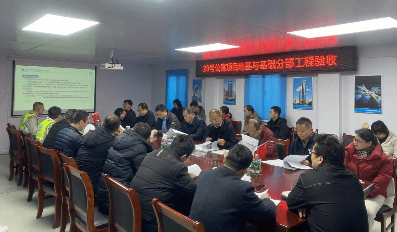 验收会议包括会议汇报、实体检查验收、资料检查验收三个环节。验收会上,基建处、施工单位、监理单位分别就工程概况、自评报告及质量评估报告进行了详细汇报。结合实体验收和资料检查情况,与会单位分别发表验收意见,一致认为项目达到国家建设工程质量验收标准,同意工程质量为合格,项目地基与基础工程通过验收。