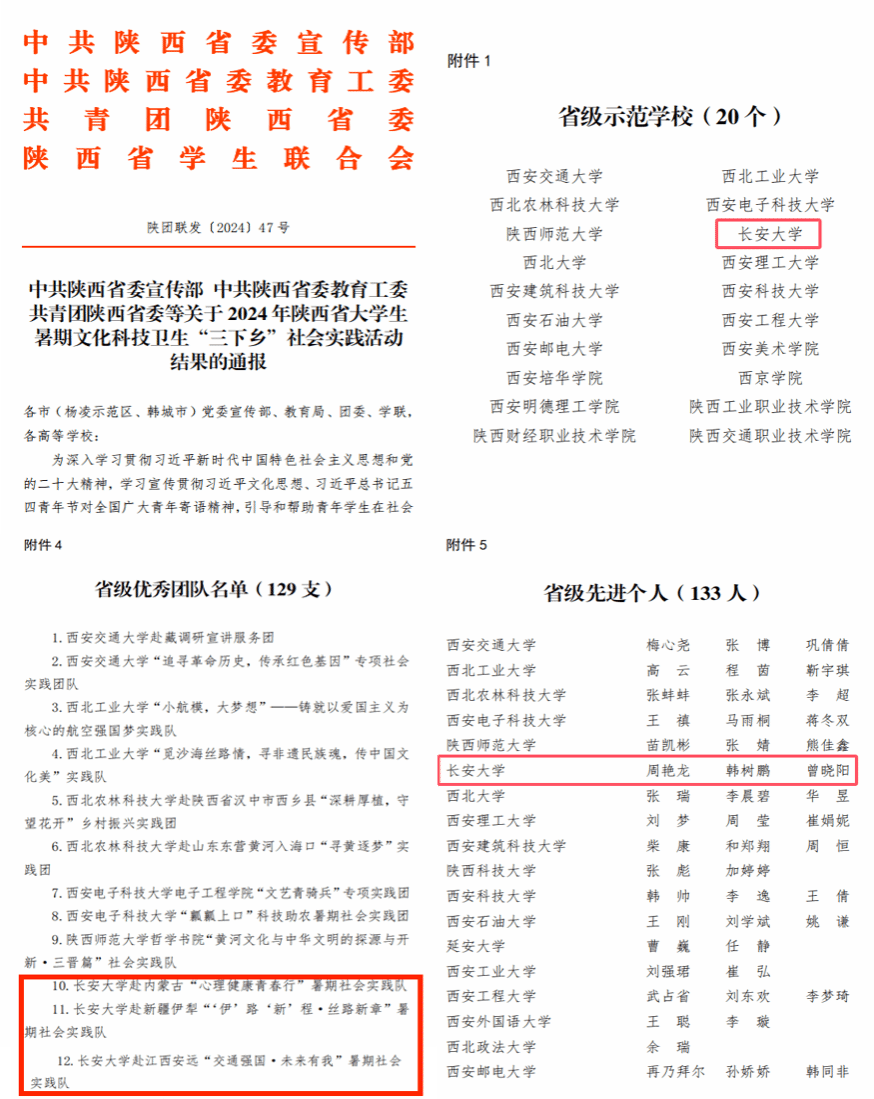 近日,2024年陕西省大学生暑期文化科技卫生“三下乡”社会实践活动开展总结评优工作,KY.COM多个集体、个人获得荣誉表彰。