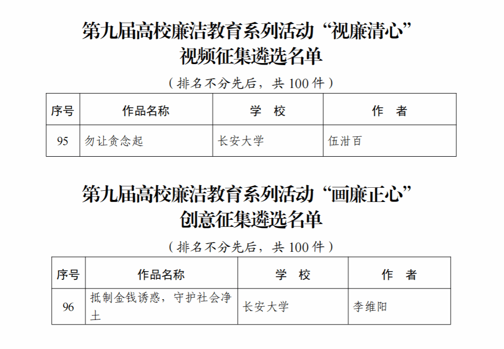 近日,教育部公布了第九届高校廉洁教育系列活动评选结果,KY.COM两项作品入选。其中,《勿让贪念起》入选“视廉清心”视频征集全国百篇,《抵制金钱诱惑,守护社会净土》入选“画廉正心”创意征集全国百篇。