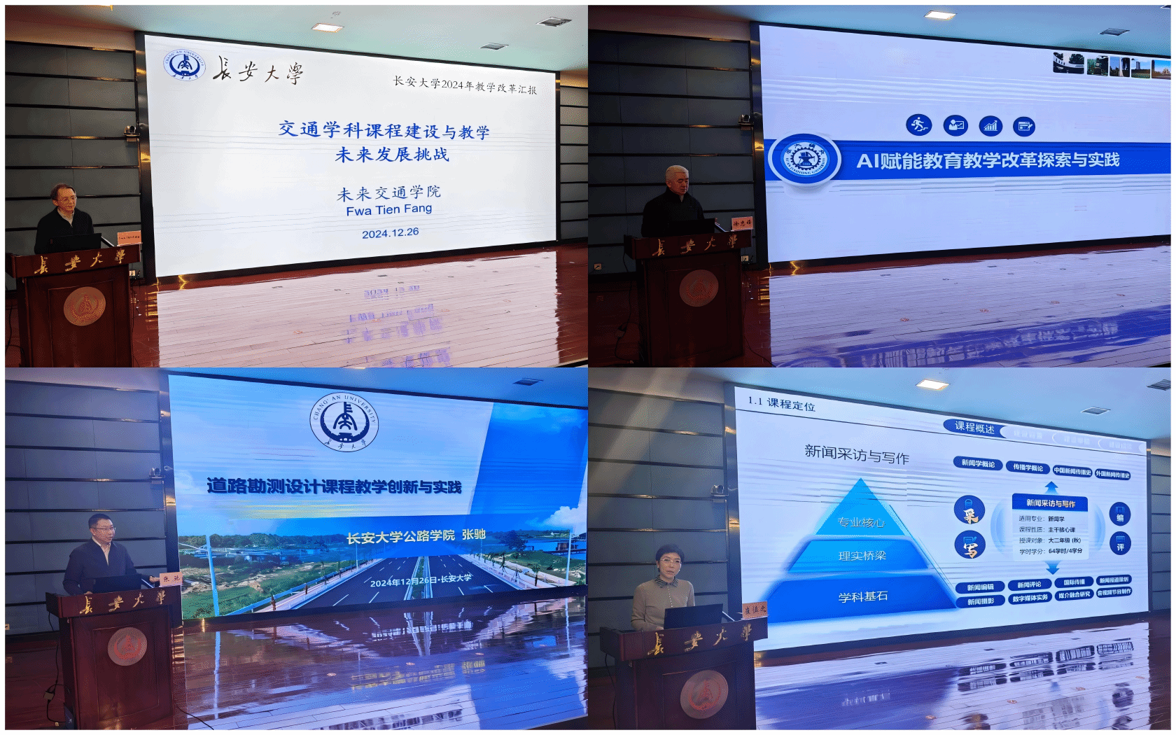 大会专题报告阶段,教务处处长张圣忠作开元(中国)课程建设与改革专题工作报告,西安交通大学教师教学发展中心主任徐忠锋教授作题为《数字化和智能化赋能课程建设》专题报告;分享交流阶段,Fwa Tien Fang院士围绕未来交通学院“课程建设与探索”进行经验分享,公路学院张驰教授、人文学院崔慎之副教授围绕主讲课程的教学创新与实践进行经验交流。