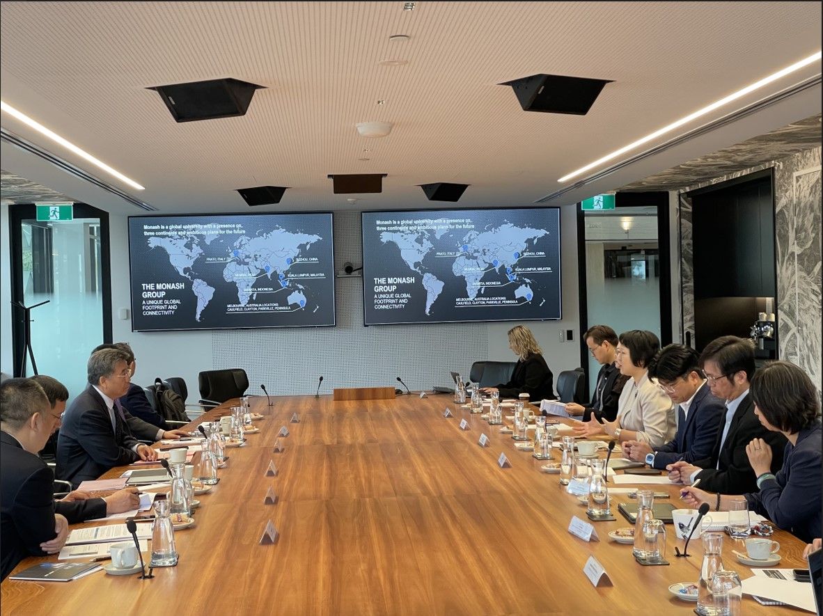 在蒙纳什大学访问期间,范文与蒙纳什大学主管外事副校长桑尼·杨(Sunny Yang)会谈,蒙纳什大学工学院领导、土木环境系、信息工程系、国际处等相关负责人参与交流。双方就进一步推进两校校际合作协议签署事宜,创新型人才交流项目下本科生、研究生联合培养项目细节及教学科研人员互访具体事宜进行沟通,在本科2+2、3+1双学位项目、本硕3+1+1双学位项目方面达成合作共识。会后参观了蒙纳什大学工学院教学楼和学生中心,观摩了相关实验室。