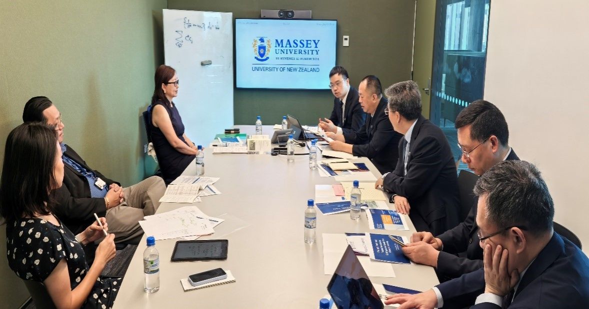 访问梅西大学期间,代表团与梅西大学科学学部建筑环境学院院长蒙蒂·苏特里斯纳(Monty Sutrisna)教授、国际处负责人吴婩博士等举行会谈,讨论两校之间合作计划,重点就3+1本科双学位项目、1+1+1硕士双学位项目及教师互访、合作科学研究等方面的推进进行深入探讨。会后参观了梅西大学教学楼、学生中心、实验室和图书馆等。