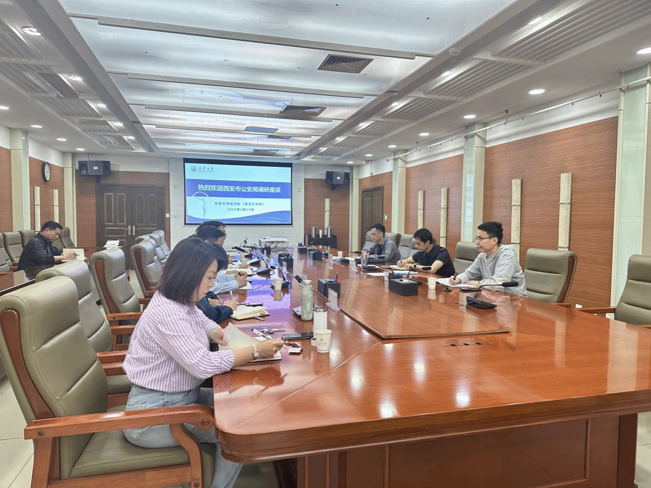 4月29日下午,西安市公安局政保支队经文保大队大队长颜军宁,政保支队经文保大队曹扬、杨舟一行来校调研交流。校党委副书记李文雄,校办、学工部、研工部、保卫处负责人及保卫处全体班子成员及部分科级干部参加座谈。
