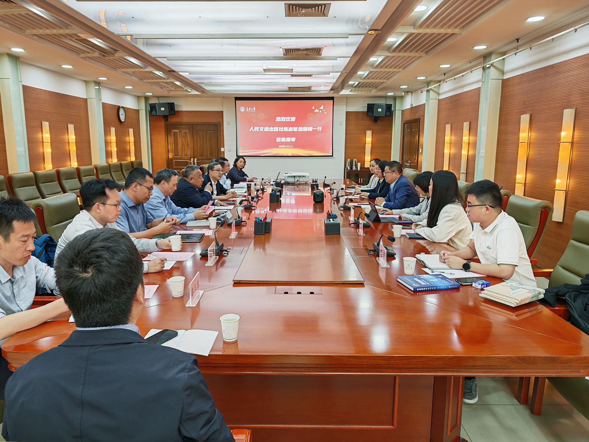 4月22日下午,人民交通出版社党委委员、总编辑陈志敏一行6人来校调研交流,副校长陈建勋出席座谈会,会议由科学研究院副院长姚以亮主持。