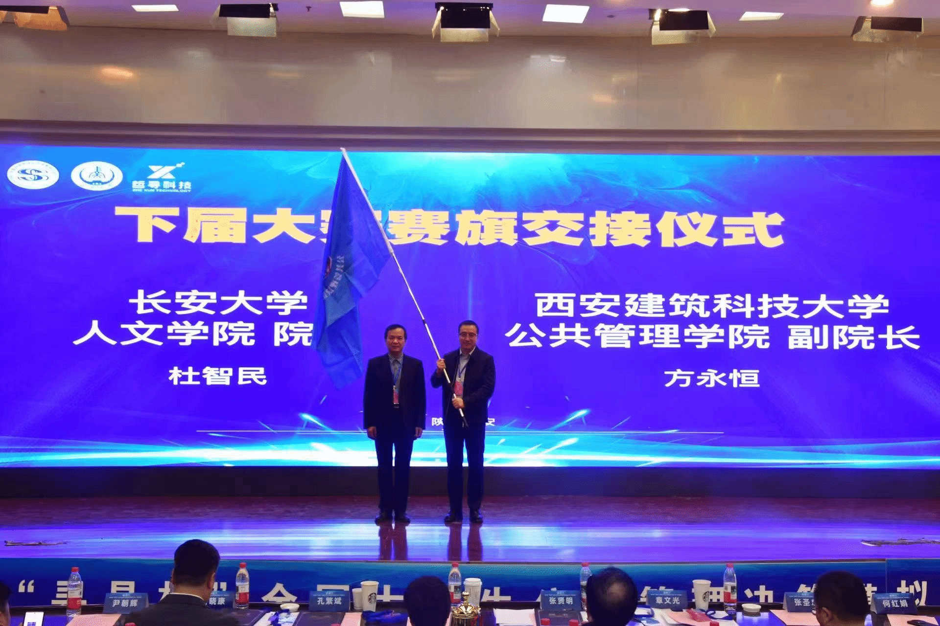 杜智民与西安建筑科技大学公共管理学院副院长方永恒分别代表本届与下届赛事承办单位进行赛旗交接。