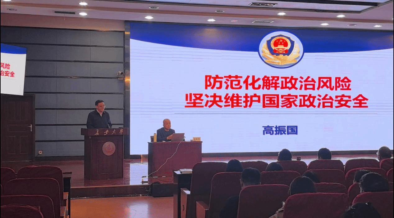 4月3日,在北校区北辰楼会议中心二楼报告厅举办国家安全形势报告会,邀请西安市公安局原三级警监高振国作《防范化解政治风险坚决维护国家政治安全》专题报告。