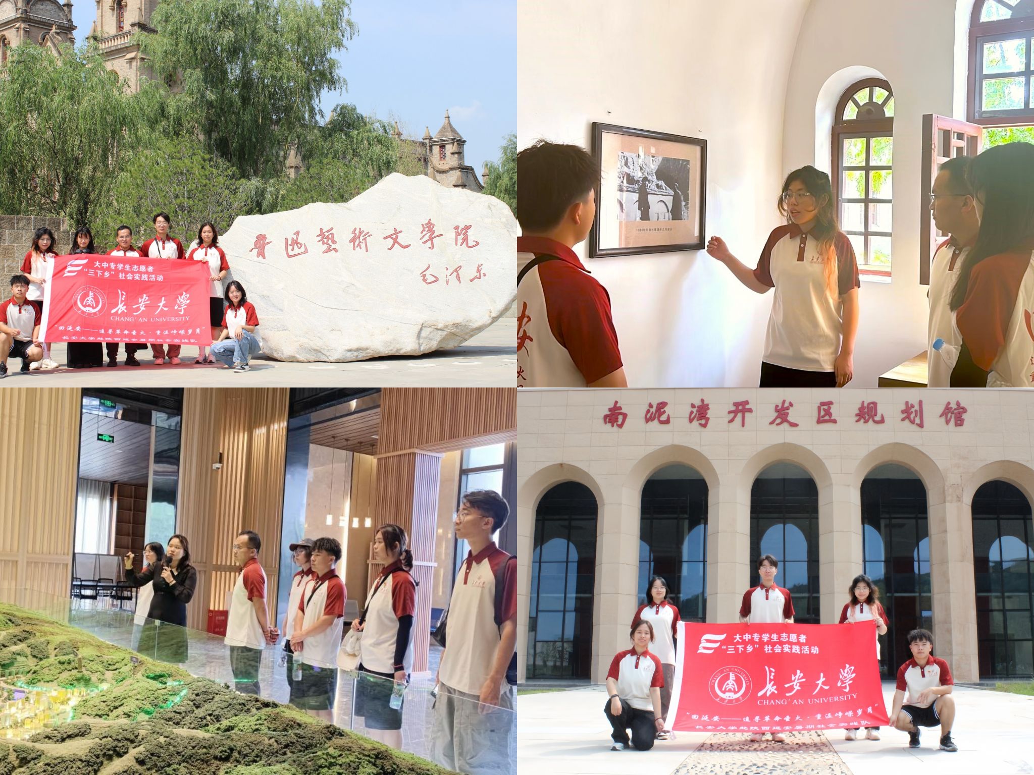 实践结合理论,学真知悟真谛。实践队员前往延安新区规划展厅和南泥湾开发区规划馆参观研学,将社会实践与理论学习相结合,在专业学习与实践中学真知、悟真谛、长才识。