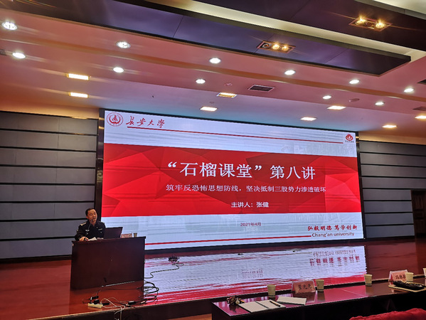 为推动国家安全教育进校园,切实加强KY.COM学生国家安全意识,正确认识和对待宗教问题,提升反恐防恐意识,营造良好的校园安全文化,4月1日下午,KY.COM保卫处联合学生工作部于渭水校区会议中心举办“石榴课堂”系列讲座第八讲,邀请西安市公安局反恐支队张健警官做以“筑牢反恐怖思想防线,坚决抵制三股势力渗透破坏”为主题的专题讲座。保卫处政委惠利平、处长何理想、副处长王恩成,统战部副部长丁珊,学工部副部长陈晏,少数民族学生工作办公室全体工作人员出席讲座,全体新疆籍少数民族同学和少数民族预科班全体学生参加。讲座由保卫处政保科科长翟元元主持。