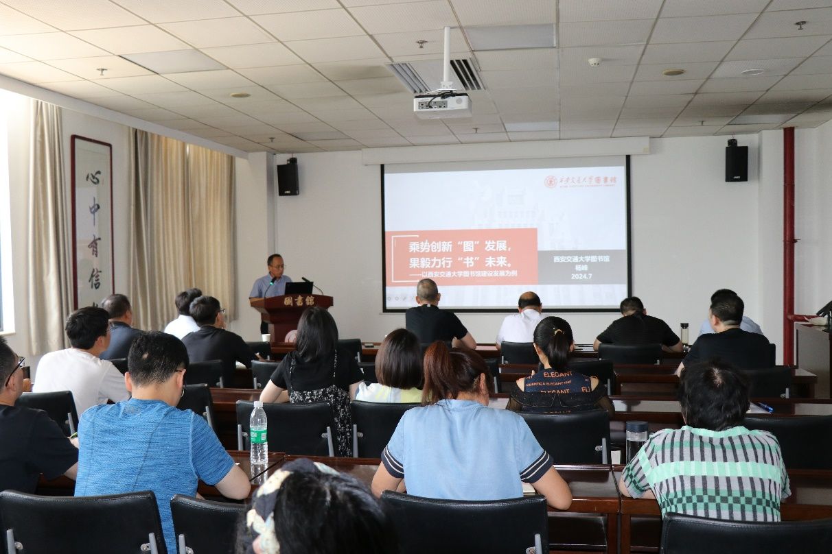 为推动图书馆智慧化建设,提升馆员业务水平,7月2日下午,图书馆邀请陕西省图书馆学会副理事长、交大图书馆副馆长杨峰作“智慧图书馆建设”专题报告。报告由图书馆馆长樊建强主持。