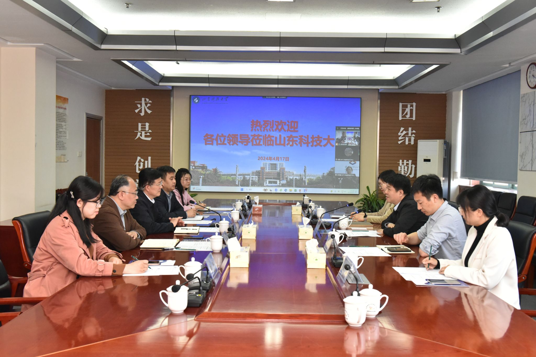 4月17日,国际教育学院院长张伟一行赴山东科技大学调研。山东科技大学党委常委、副校长徐龙飞主持会议,山东科技大学国际交流学院院长范志坚、交通学院副院长徐伟,中国公路学会WTC执委会运行中心副主任洪梓璇、学术处主管陈琨参会。