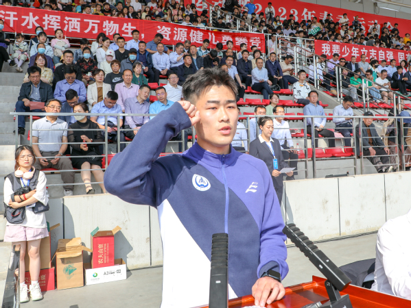 运动员代表黄钧驿、裁判员代表代函芷宣誓