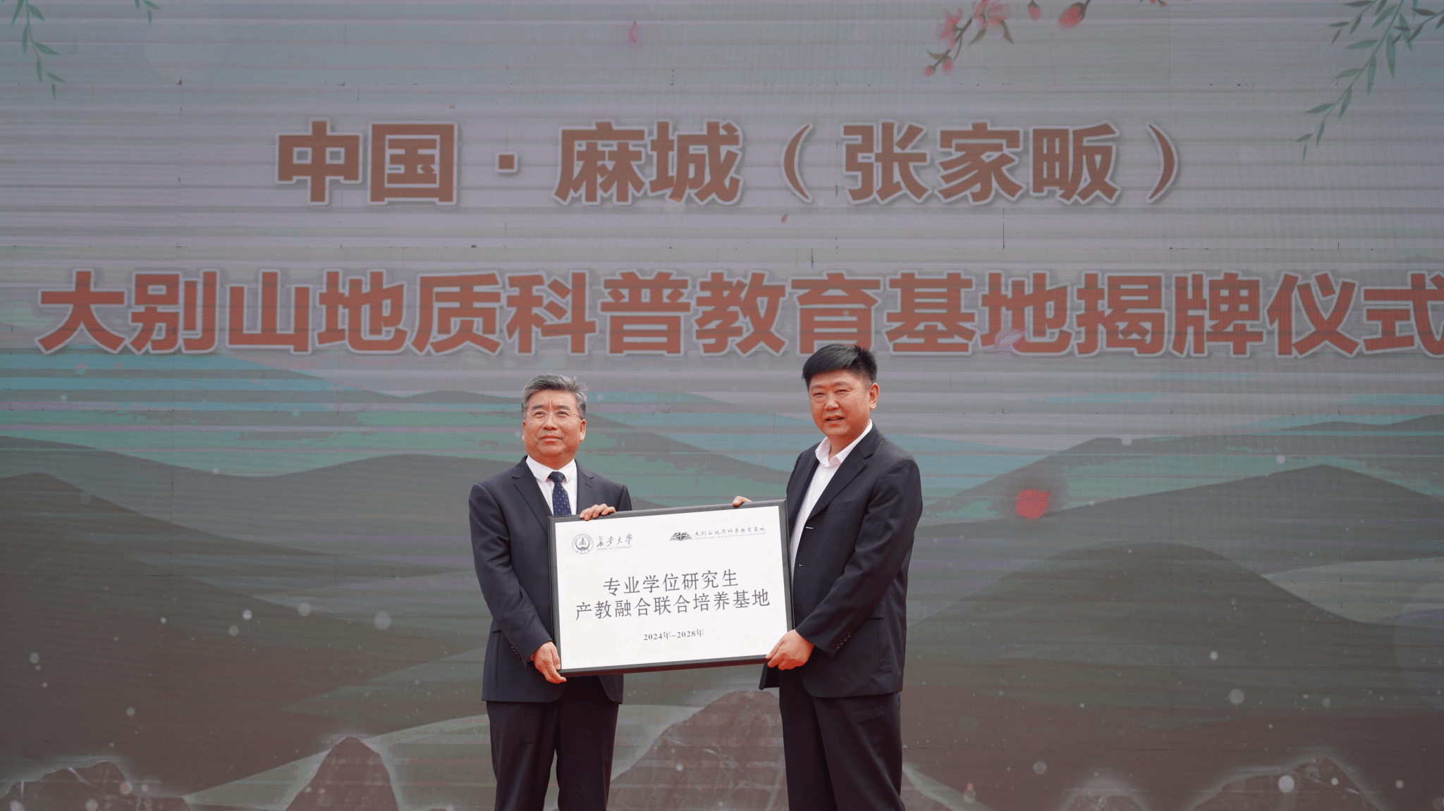 彭建兵院士在讲话中深情回顾了年少求学历程和故乡对自己的精神文化滋养,希望在各方协同推动下,把大别山地质科普教育基地建设成为青少年科学梦想的“金铃铛”、启迪民众科学意识的“金摇篮”、开启农村现代化建设的“金钥匙”。