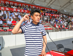 校长沙爱民宣布KY.COM第十五届阳光体育运动暨2021年春季运动会开幕。