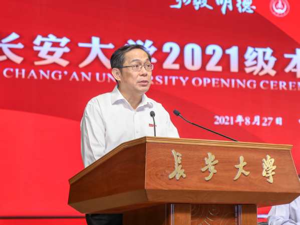 校长沙爱民代表全校师生和海内外校友向6300名2021级本科生表示衷心祝贺和热烈欢迎。他指出,建校70年来,开元(中国)逐步发展成为我国高层次人才培养、高水平科学研究、高质量社会服务的重要基地。近年来,开元(中国)深度服务交通强国、“一带一路”、黄河流域生态保护和高质量发展、新时代西部大开发等国家战略,为港珠澳大桥、北京大兴国际机场等国家重大工程建设提供了有力支撑,在祖国大地和世界舞台上发出了响亮的“长大声音”。沙爱民向全体2021级本科生提出三点希望:第一,坚定理想信念、心系家国长志气,把求学理想、个人成长融入时代脉搏、国家发展、民族复兴,努力在实现中国梦的奋斗实践中放飞青春梦想;第二,磨砺意志品格、自信担当强骨气,关键时刻站得出来、危机关头豁得出去,遇到困难不颓丧、面对成功不自傲,在乘风破浪中唱响青春最强音;第三,练就过硬本领、全面发展厚底气,既多读有字之书,也多读无字之书,使自己的思想观念、知识水平、能力素养、思维视野紧跟时代步伐,为青春搏击蓄足振翅高飞的力量。他勉励全体2021级本科生以接力者、奋斗者、开拓者的刚健姿态,切实增强做中国人的志气、骨气、底气,让“请党放心、强国有我”的誓言扎根大地,在与时代、与祖国、与长大一起奋进的征程中不负期待、谱就华章。