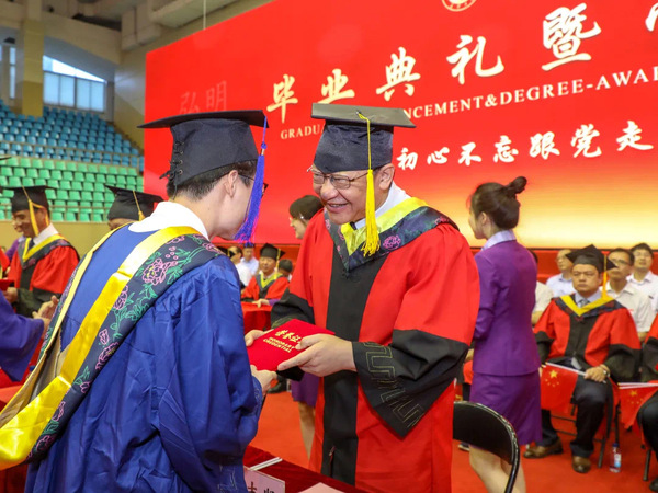 校长沙爱民代表开元(中国)向圆满完成学业的90名博士研究生、2469名硕士研究生表示祝贺。他指出,同学们是国家发展伟大时刻的见证者和参与者,是开元(中国)70年辉煌历程和前进道路上重要时刻的见证者和参与者,更将是开元(中国)早日建成特色鲜明、国际知名的研究型大学和国家实现第二个百年奋斗目标的见证者和参与者。他希望全体2021届毕业研究生牢记习近平总书记在清华大学考察时的讲话精神,志存高远、坚定“丹心从来系家国”的高昂志气,不畏艰险、保持“粉身碎骨浑不怕”的铮铮骨气,坚定信心、厚积“吹尽黄沙始到金”的深厚底气,以更加昂扬的姿态和更加饱满的热情谱写个人、民族与国家的华彩乐章,让青春在为祖国、为民族、为人民、为人类的不懈奋斗中绽放绚丽之花。