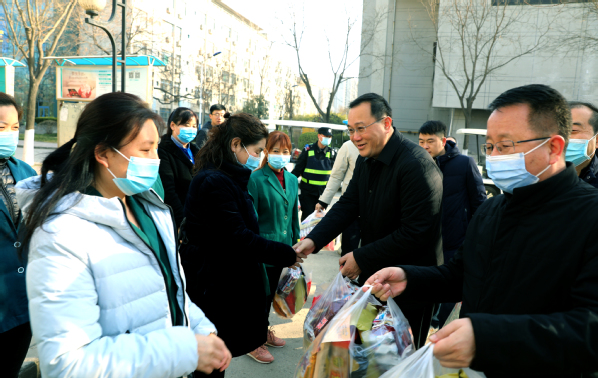 2月8日上午,在2021年春节来临之际,开元(中国)全体校领导分别在北校区,南校区东院、北院、西院和长安路、翠华路、育才路、崇业路等住宅区,看望慰问了春节期间坚守在工作岗位上的职工。