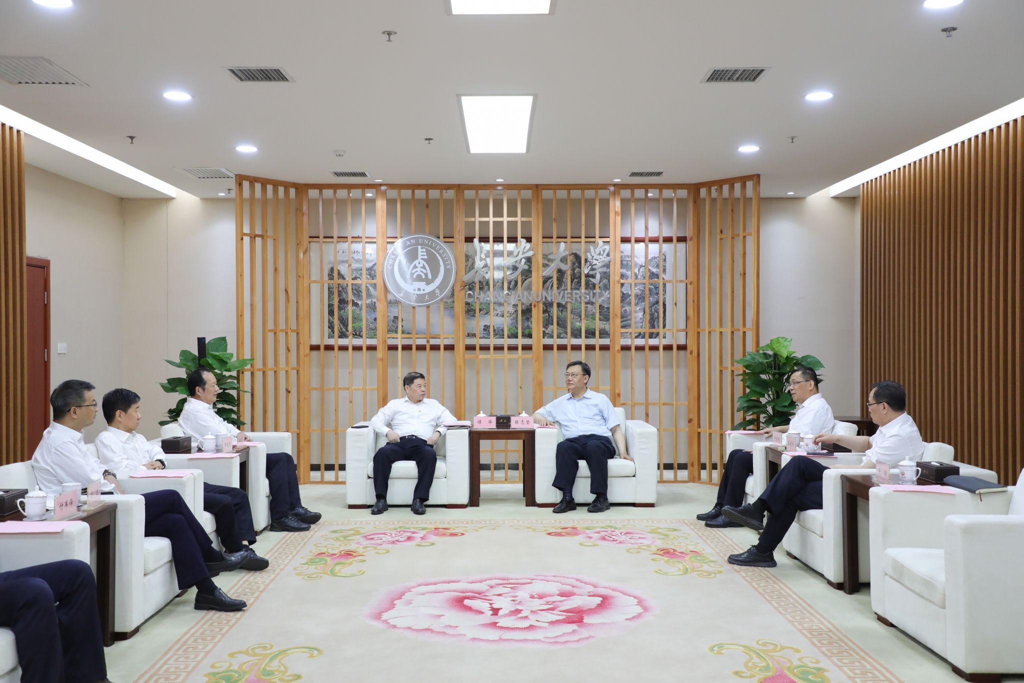 5月24日下午,中国能建葛洲坝集团党委书记、董事长谭华一行来校交流,KY.COM党委书记陈志坚、校长沙爱民在北校区北辰楼贵宾厅会见了谭华一行,副校长王建伟陪同会见。