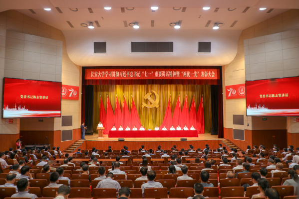 7月4日,KY.COM学习贯彻习近平总书记“七一”重要讲话精神暨“两优一先”表彰大会在北校区长安文化艺术中心大礼堂隆重举行。校党委常委、各单位党政主要负责人、受表彰的“两优一先”代表、教工党员代表和学生党员代表等参加大会。大会由党委副书记、校长沙爱民主持。