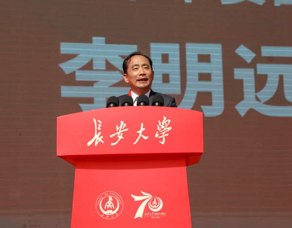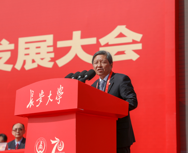 在大会现场,校友代表、智慧港珠澳大桥建设团队代表苏权科发言,相信以建校70周年为起点,长大人一定能感恩奋进、砥砺前行,把长大精神绵延赓续,发扬光大。教职工代表、黄河科学研究团队代表、中国科学院院士彭建兵教授表示,团队将在各级组织领导支持下,实施宜居黄河科学计划,为黄河流域生态保护和高质量发展贡献力量。在校学生代表吕磊表示将牢记习近平总书记嘱托,坚定不移听党话、跟党走,弘毅明德、笃学创新,努力成长为下一个中国奇迹中的长大力量。
