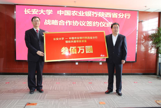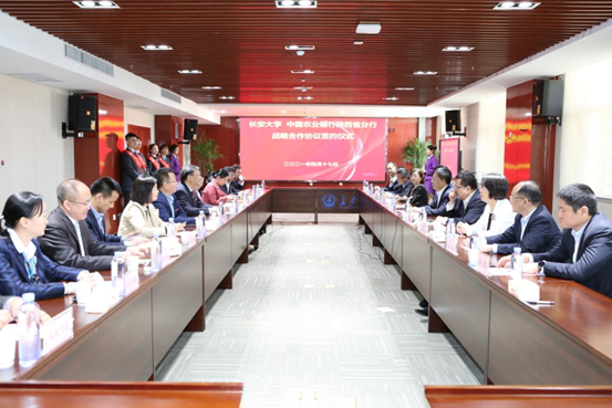 中国农业银行陕西省分行副行长、西安分行党委书记、行长薛雷和彪晓红代表双方签署战略合作协议。