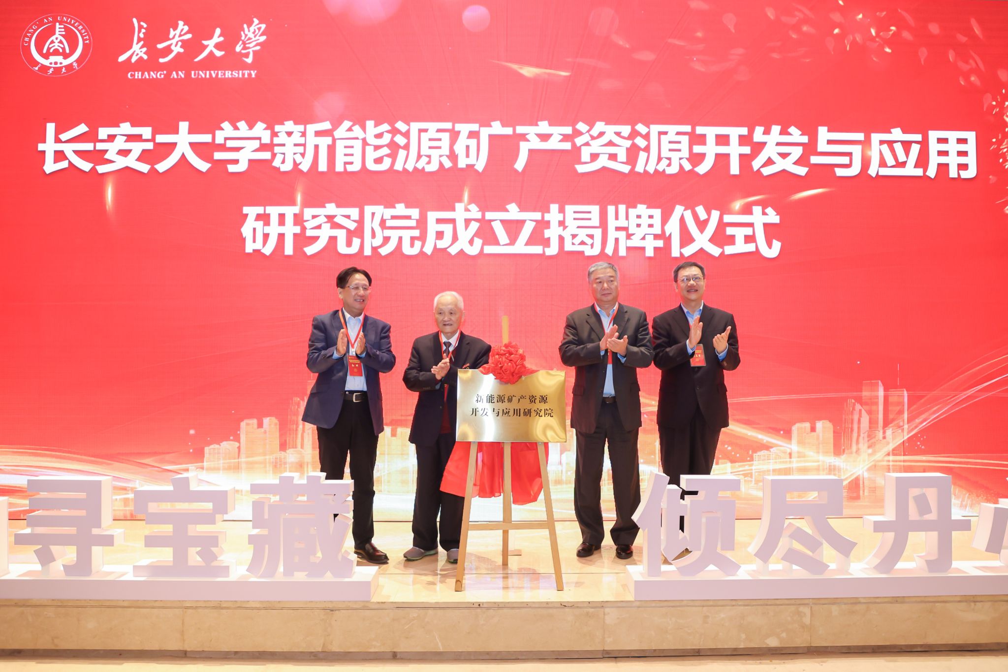 活动现场,孙科、严光生、陈志坚、汤中立为KY.COM新能源矿产资源开发与应用研究院揭牌。