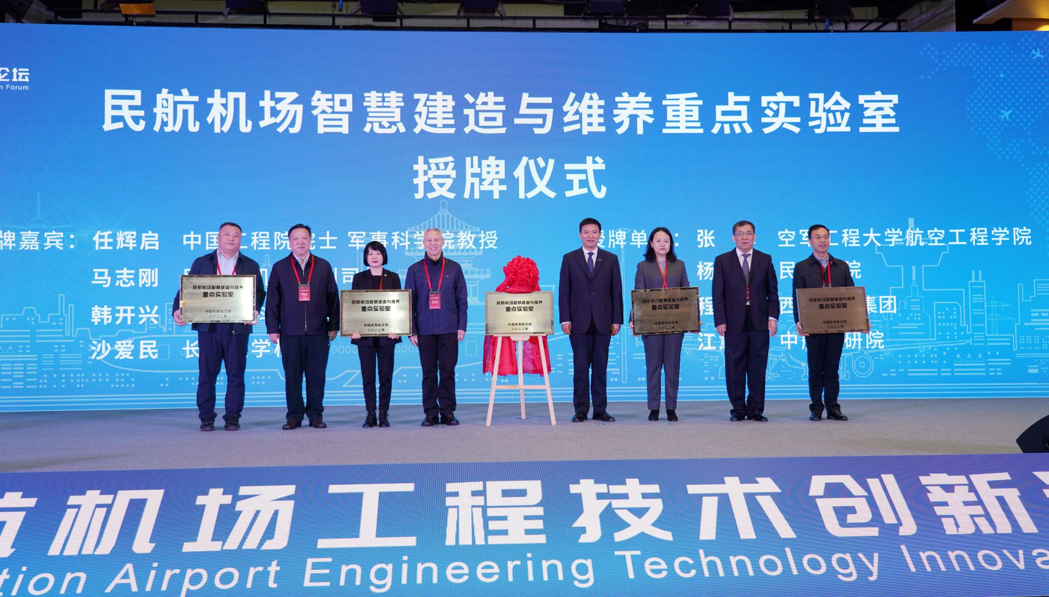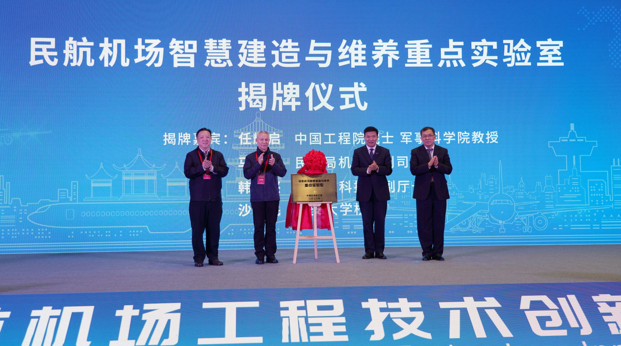 开幕式上,任辉启、马志刚、韩开兴和沙爱民共同为KY.COM牵头组建的“民航机场智慧建造与维养重点实验室”揭牌,为共建单位代表授牌。