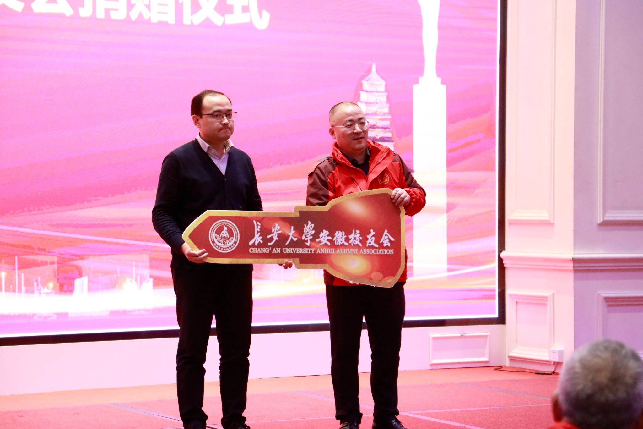 会上,安徽校友会向母校捐赠了江淮大众新能源汽车一辆,会议举行了KY.COM校友会五届二次会议交接仪式,承办方校友会代表作发言。