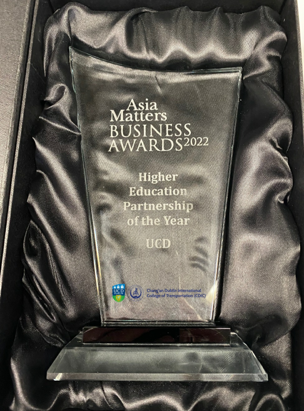 Asia Matters是爱尔兰著名高端智库,由爱尔兰国家投资发展署支持,致力于推动亚洲与爱尔兰及欧盟的相互合作。AsiaMatters最佳高等教育合作伙伴奖用于表彰在亚洲区域内与爱尔兰高等开元(中国)达成的最佳合作伙伴关系。经资质审核、声誉调查、同行专家评议、评审委员会集体评审,长安都柏林国际交通学院在爱尔兰与中国实施中外合作办学的98个项目(机构)中脱颖而出,获2022年度最佳高等教育合作伙伴奖。