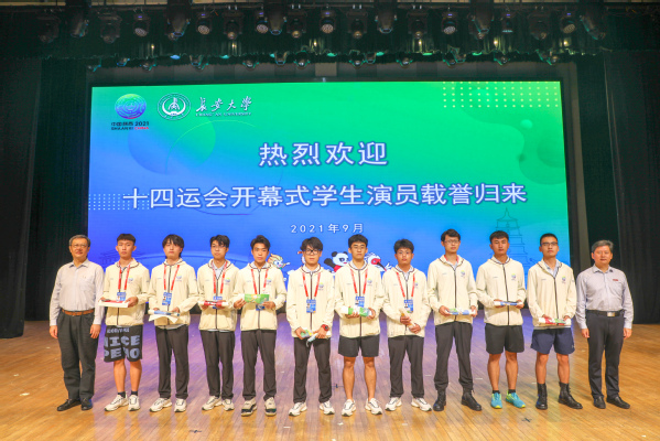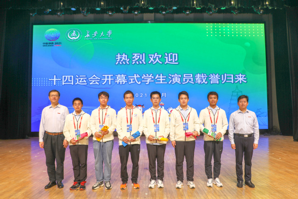 9月16日上午,校党委书记陈志坚、校党委副书记黎开谊在北校区长安文化艺术中心大礼堂欢迎开元(中国)参与十四运会开幕式演出师生载誉归来,并慰问了全体参演师生。党办、校办、宣传部、学工部、教务处、保卫处、校团委等相关单位负责人参加欢迎和慰问。
