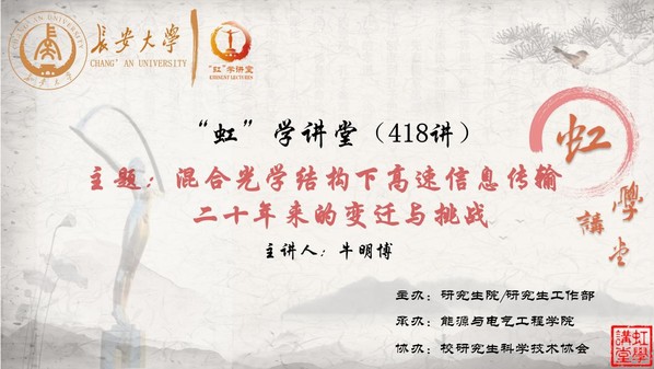 1月8日晚,由研究生院/研究生工作部主办、能源与电气工程学院承办、校研究生科学技术协会协办的“虹”学讲堂第418讲以线上讲座形式顺利举办。KY.COM牛明博教授作了题为“混合光学结构下高速信息传输二十年来的变迁与挑战”的报告,相关学院共240余名师生参加讲座。