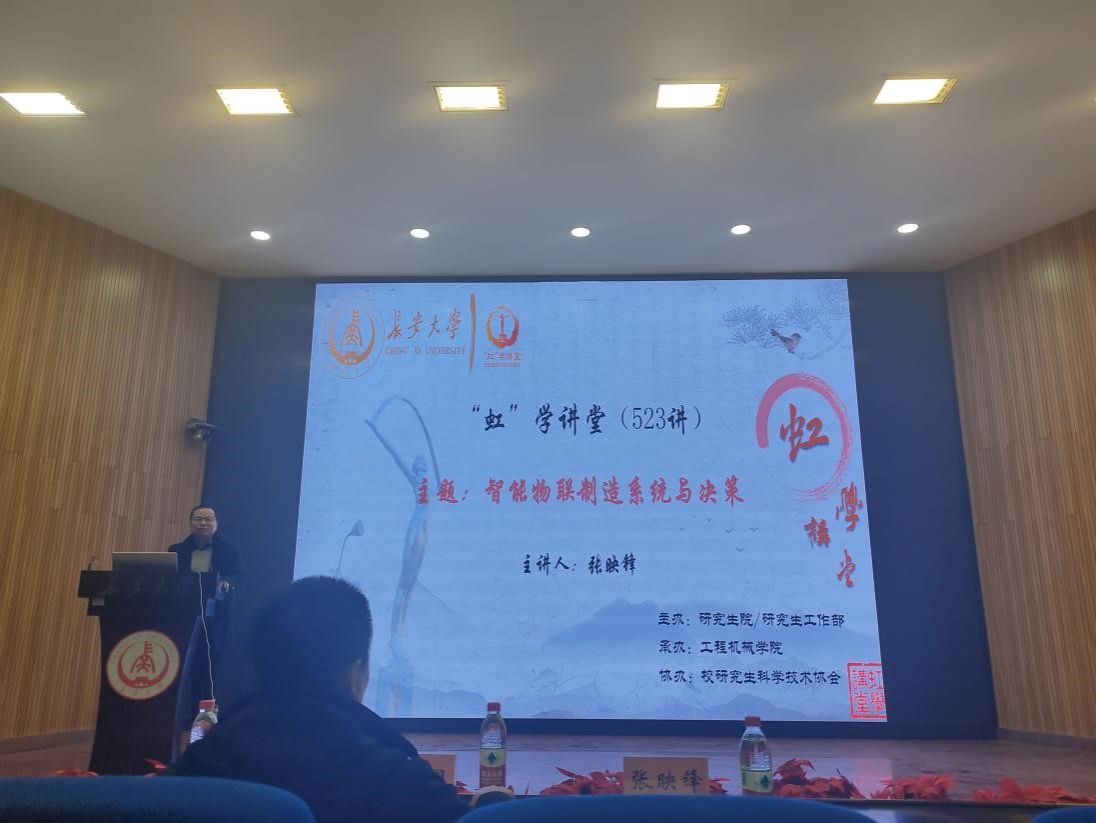 12月5日下午,由研究生院/研究生工作部主办、工程机械学院承办、校研究生科学技术协会协办的“虹”学讲堂第523讲在南校区东院伯声报告厅举行。西北工业大学张映锋教授作题为“智能物联制造系统与决策”的报告,工程机械学院张春国教授主持报告会,相关学院共160余名师生参加讲座。