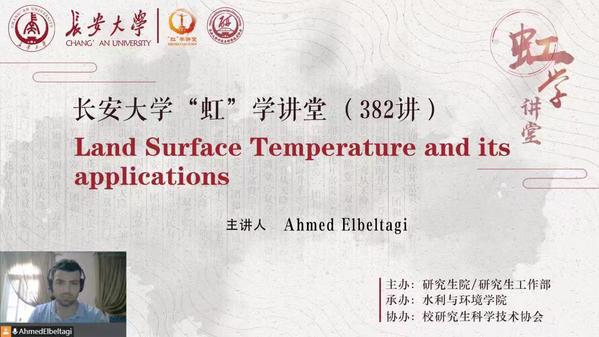 6月7日下午,由研究生院/研究生工作部主办、水利与环境学院承办、校研究生科学技术协会协办的“虹”学讲堂第382讲以线上讲座形式举行。埃及曼苏拉大学Ahmed Elbeltagi教授作了题为“地表温度以及应用(Land Surface Temperature and itsapplications)”的报告,相关学院350余名师生聆听讲座。