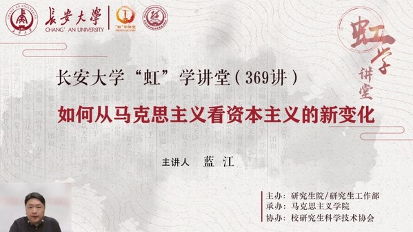 5月17日晚,由研究生院/研究生工作部主办、马克思主义学院承办、校研究生科学技术协会协办的“虹”学讲堂第369讲以线上讲座形式举行。南京大学蓝江教授作了题为《如何从马克思主义看资本主义的新变化》的报告,相关学院共300余名师生参加讲座。