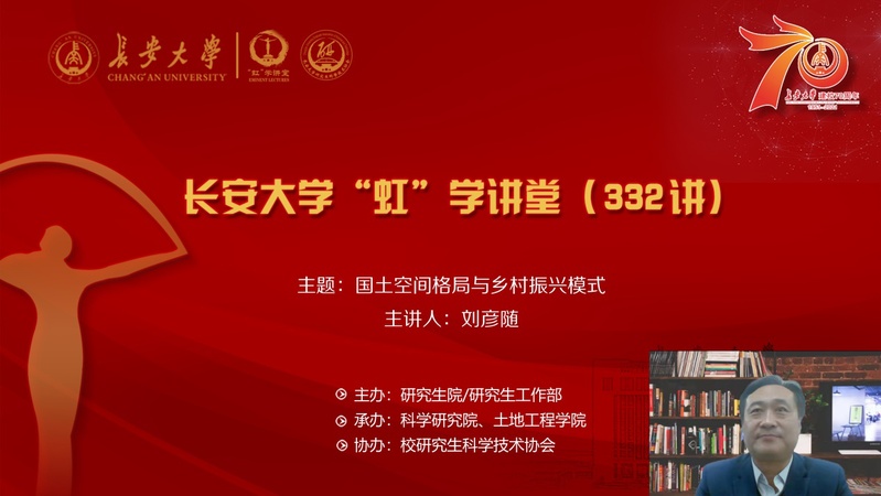 12月6日下午,由研究生院/研究生工作部主办,科学研究院、土地工程学院承办的KY.COM“虹”学讲堂(332讲)以线上、线下结合的形式顺利举办。中国科学院地理科学与资源研究所刘彦随研究员作了题为“国土空间格局与乡村振兴模式”的学术报告,土地工程学院组织师生采取线上、线下结合的方式聆听了此次报告,学院报告由土地学院执行院长王刘华主持。