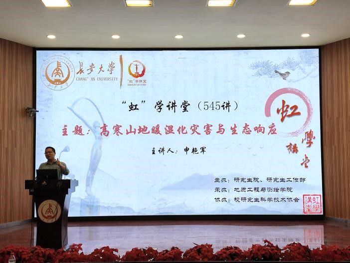4月16日晚,由研究生院、研究生工作部主办,地质工程与测绘学院承办,校研究生科学技术协会协办的“虹”学讲堂第545讲在南校区东院伯声报告厅举办。KY.COM申艳军教授作了题为“高寒山地暖湿化灾害与生态响应”的报告,相关学院共150余名师生参加讲座。