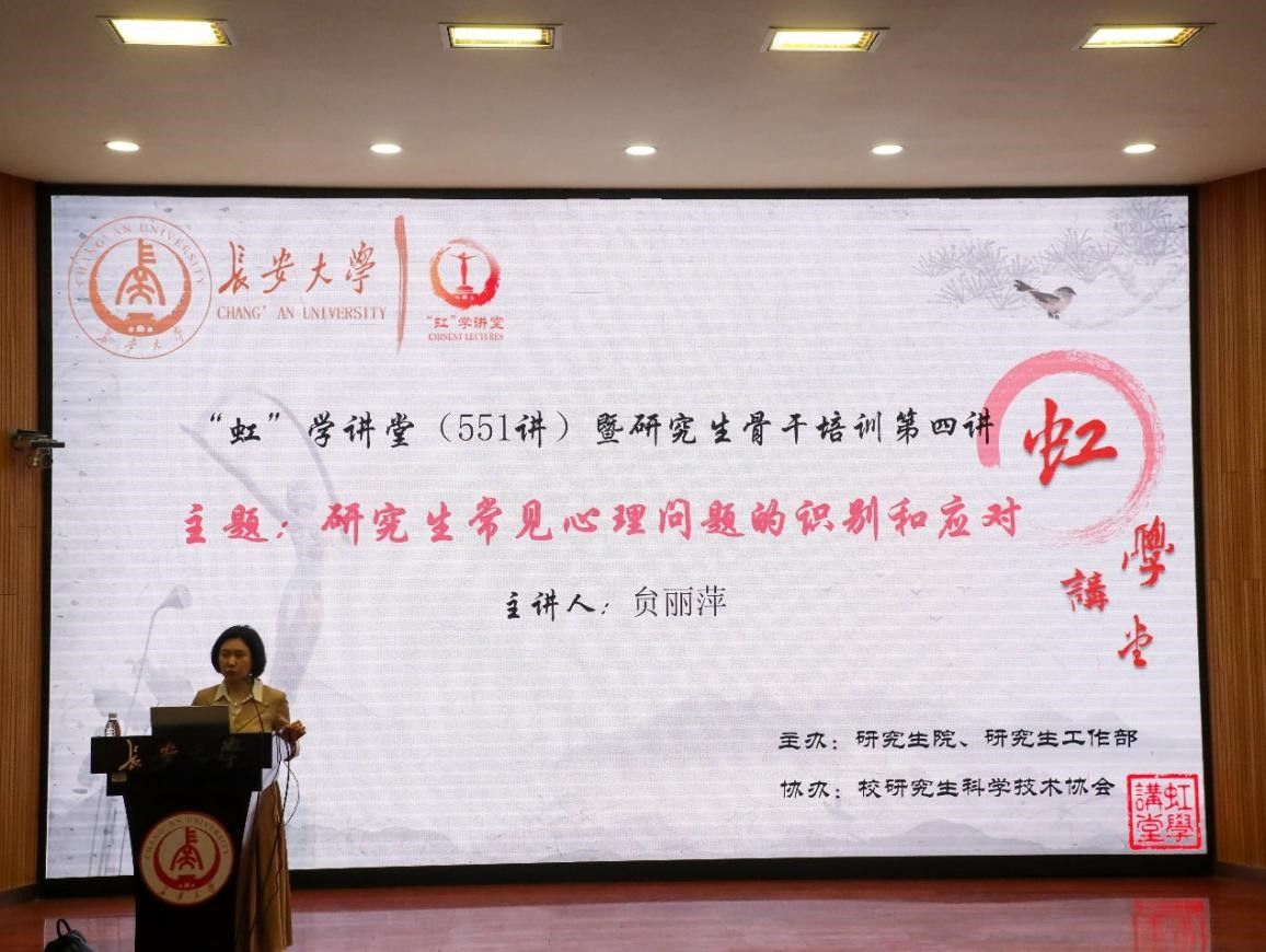 4月25日下午,由研究生院、研究生工作部主办,校研究生科学技术协会承办的“虹”学讲堂第551讲暨研究生骨干培训第四讲以线上线下相结合的形式举办。KY.COM贠丽萍副教授作题为“研究生常见心理问题的识别和应对”的报告,相关学院共280余名师生参加讲座。