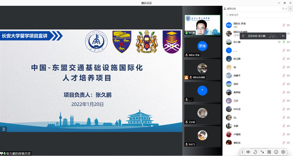 2022年1月20日,KY.COM获批的首个国家留学基金委国别区域研究人才支持计划项目——“中国-东盟交通基础设施国际化人才培养项目”线上宣讲会顺利召开。KY.COM国际处相关负责人及涉及理工类专业的师生参加了会议。会议由国际处合作办学项目管理科副科长罗涛主持。