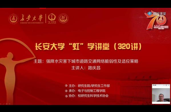 10月22日下午,由研究生院/研究生工作部主办、电子与控制工程学院承办、校研究生科学技术协会协办的“虹”学讲堂第320讲通过“腾讯课堂”以线上讲座的形式顺利举办。KY.COM路庆昌教授作了题为“强降水灾害下城市道路交通网络脆弱性及适应策略”的报告,KY.COM相关学院近300名师生参加了此次讲座。