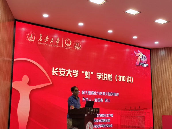 本次报告主要围绕超大陆的演化进行展开。赵国春院士阐明地球可能是太阳系唯一有板块构造的星球,板块构造实际上是刚性的岩石圈在软流圈上做水平运动,而水平运动会导致大陆周期性地聚合与裂解。在地球演化到某一阶段,当几乎所有大陆岩石圈运动到一起时就形成超大陆,地球在近46亿年的漫长演化过程中,只形成少数几个超大陆:哥伦比亚(Columbia)超大陆,罗迪尼亚(Rodinia)超大陆以及潘基亚(Pangea)超大陆。赵国春院士以时间为尺度,向师生们详细介绍了哥伦比亚超大陆的聚合、增生和裂解过程以及东亚陆块的形成过程。哥伦比亚超大陆是由全球主要克拉通陆块在20至18亿年期间相互碰撞拼合而成;在18至13亿年期间,哥伦比亚超大陆部分大陆边缘发生向外增生造山作用,同一时间,哥伦比亚超大陆内部处于拉张环境,形成大量的非造山型火成岩和裂谷带;直到12.7亿年,以北美铜矿河(CoppermineRiver)大陆溢流玄武岩和麦肯奇(MacKenzie)基性岩墙群为代表的超级地幔柱的作用,导致哥伦比亚超大陆部分裂解。哥伦比亚超大陆解体出来的波罗地陆块、南美陆块、西非—刚果陆块、南非陆块、印度陆块和澳大利亚陆块于10亿年又与北美劳伦(Laurentia)古陆和南极陆块拼合,形成罗迪尼亚超大陆。10至8.5亿年,东亚陆块在罗迪尼亚超大陆中还处于分散状态;8.2至8.15亿年,东亚陆块中的扬子与华夏拼合形成华南克拉通;7.5至6亿年罗迪尼亚超大陆最终裂解;随着板块的不断运动,5至4.2亿年,东亚陆块第一次拼合于冈瓦纳古陆北缘;2.5至2.2亿年,东古特提斯洋闭合,潘基亚超大陆形成,东亚大陆最终形成。