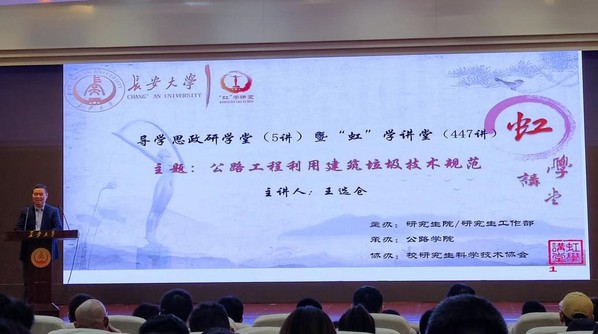 4月14日晚,由研究生院/研究生工作部主办、公路学院承办、校研究生科学技术协会协办的导学思政研学堂5讲暨“虹”学讲堂第447讲在南校区北院学术交流中心顺利举办。KY.COM王选仓教授作了题为“公路工程利用建筑垃圾技术规范”的报告,相关学院共300余名师生参加讲座。