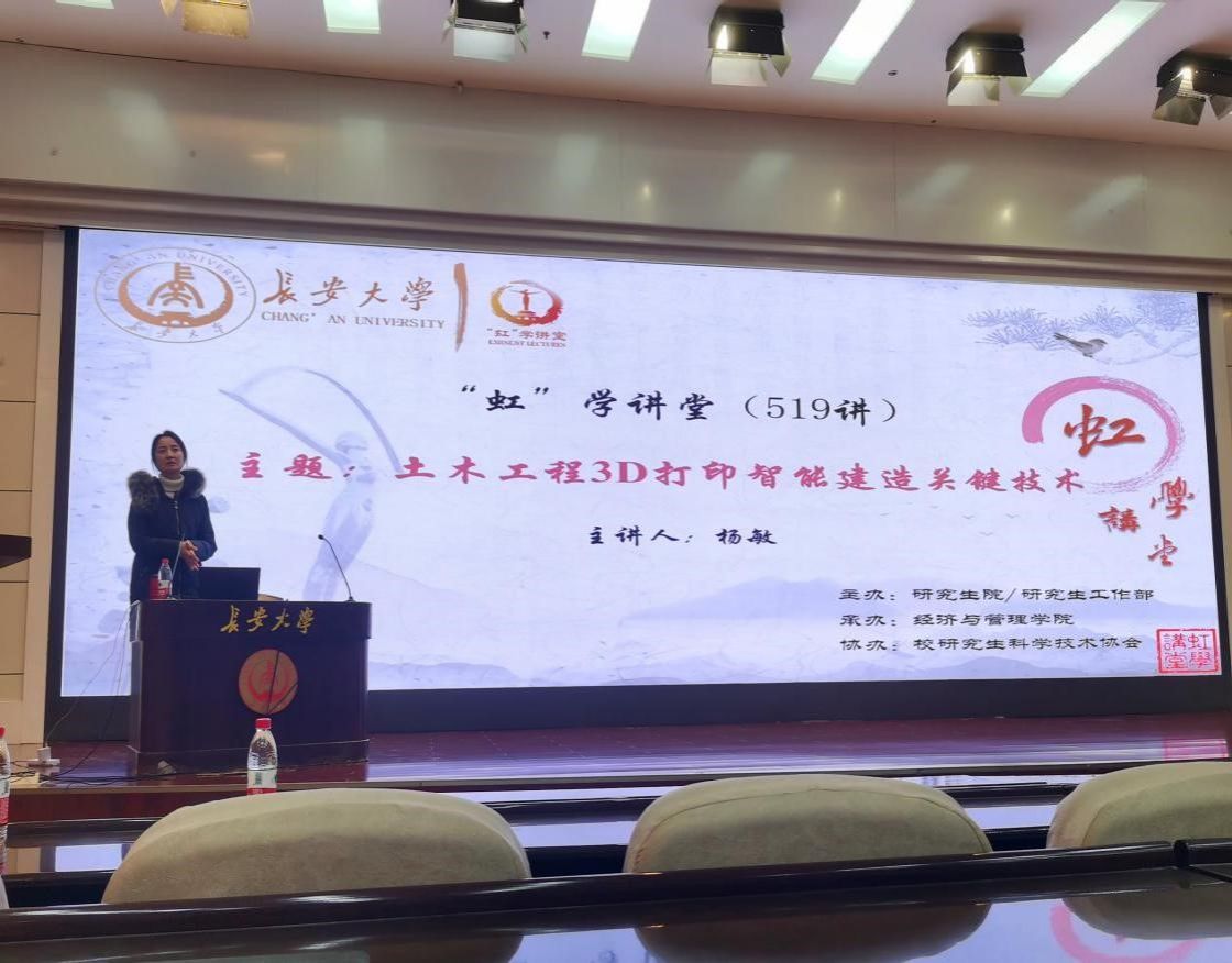 12月2日上午,由研究生院/研究生工作部主办、经济与管理学院承办、校研究生科学技术协会协办的“虹”学讲堂第519讲在南校区北院学术交流中心举办。中交第一公路勘察设计研究院高级工程师杨敏作题为“土木工程3D打印智能建造关键技术”的报告,相关学院共270余名师生参加讲座。