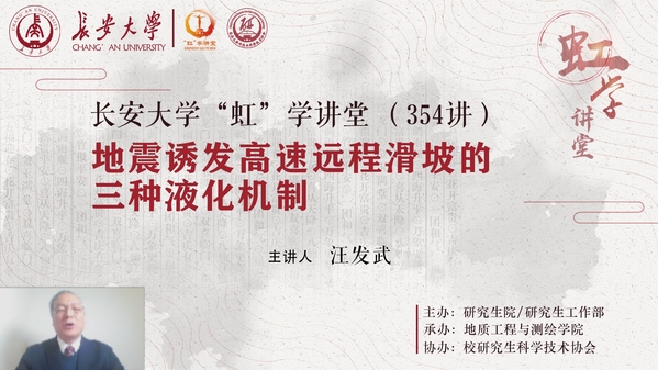 3月29日晚,由研究生院/研究生工作部主办、地质工程与测绘学院承办、校研究生科学技术协会协办的“虹”学讲堂第354讲以线上讲座形式举办。日本工程院外籍院士汪发武作了题为“地震诱发高速远程滑坡的三种液化机制”的报告,地质工程与测绘学院李萍教授主持了此次讲座,相关学院共300余名师生参加。