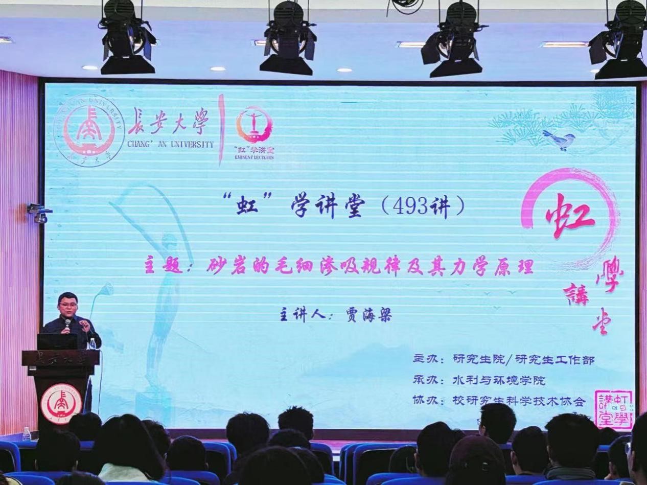 10月16日上午,由研究生院/研究生工作部主办、水利与环境学院承办、校研究生科学技术协会协办的“虹”学讲堂第493讲在南校区东院伯声报告厅举办。西安科技大学贾海梁教授作题为“砂岩的毛细渗吸规律及其力学原理”的报告,水利与环境学院罗平平教授主持报告,相关学院共160余名师生参加讲座。