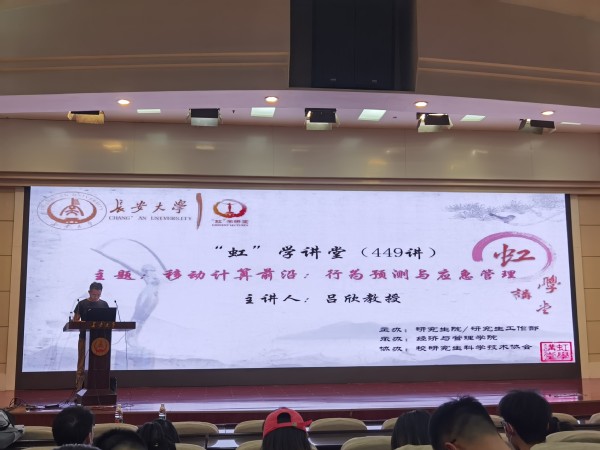 4月18日下午,由研究生院/研究生工作部主办、经济与管理学院承办、校研究生科学技术协会协办的“虹”学讲堂第449讲在南校区北院学术交流中心顺利举办。国防科技大学吕欣教授作了题为“移动计算机前沿:行为预测与应急管理”的报告,经济与管理学院副院长马飞主持,相关学院共280余名师生参加讲座。
