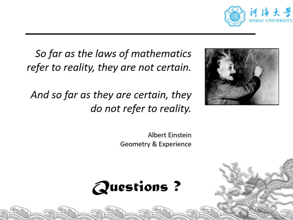 本次报告主要围绕计算机模型参数不确定性量化准则,包括参数筛选和基于代理建模的优化等内容展开。参数筛选是参数不确定性量化的必要步骤,因为只有有限数量的模型参数是敏感的。段青云教授介绍了其团队开发的优化方法,该方法是基于自适应代理建模的优化(ASMO),是一种非常有前途和潜力的优化方法,主要体现在:ASMO与SCE-UA一样完善,但效率更高;对于连续优化问题,MO-ASMO和NSGA Il一样完善,但前者更高效;对于分布式模型,MO-ASMOGS和MO-ASMO一样好,但是前者要高效10倍;对于混合优化问题,MO-ASMOCH与NSGAII一样稳定和完善,但前者的效率更高,是后者的4-10倍。ASMO方法有许多潜在的应用,包括制造设计问题、水库设计优化、大型复杂分布式模型校准、水系统设计问题等。