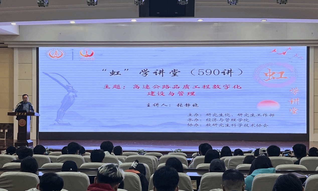 10月31日下午,由研究生院、研究生工作部主办,经济与管理学院承办,校研究生科学技术协会协办的“虹”学讲堂第590讲在南校区北院学术交流中心报告厅举行。KY.COM张静晓教授作题为“高速公路品质工程数字化建设与管理”的报告,相关学院共270余名师生参加讲座。